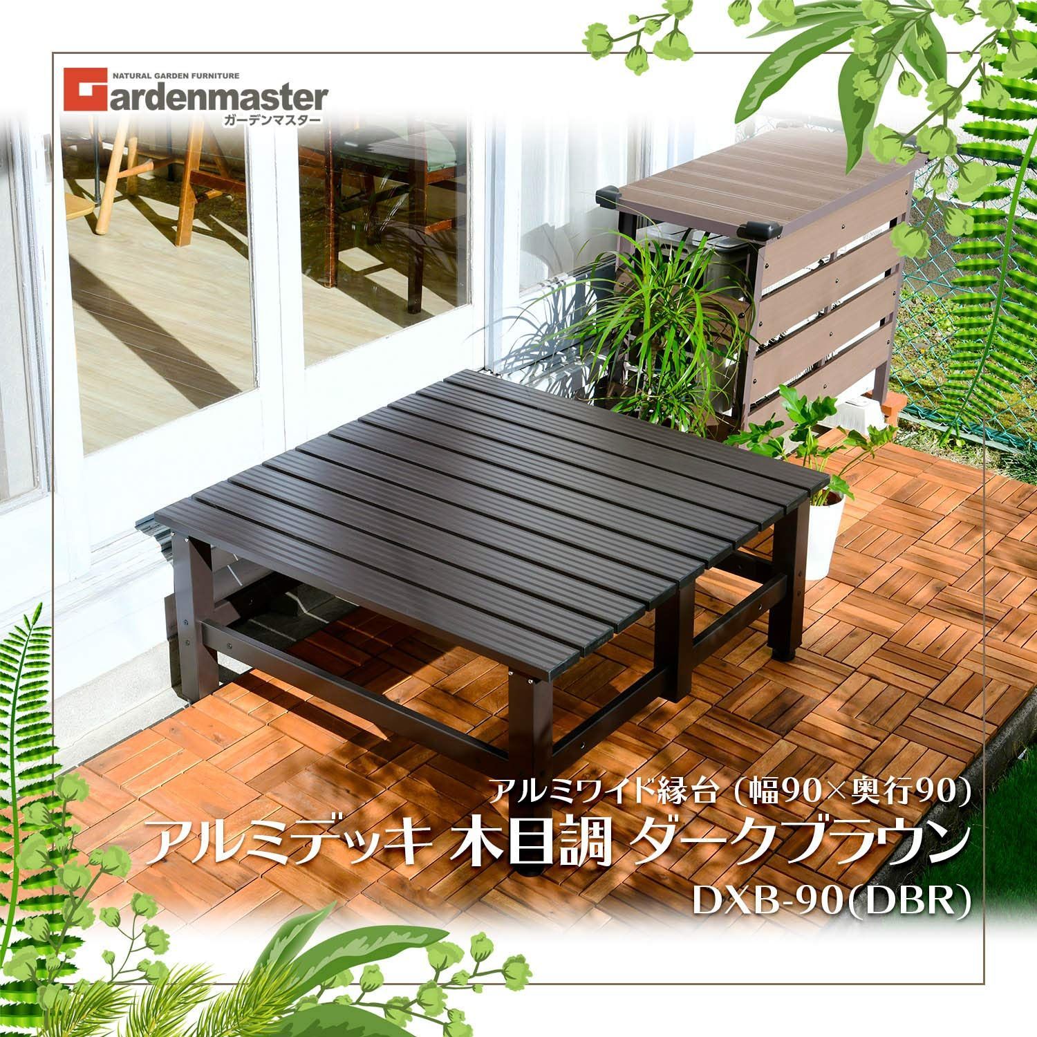 ガーデンマスター アルミワイド縁台 幅90×奥行90×高さ40cm ガーデンベンチ ガーデンチェア バルコニー 軽量 踏み台 足場台 デッキ お庭 ダークブラウン DXB-90