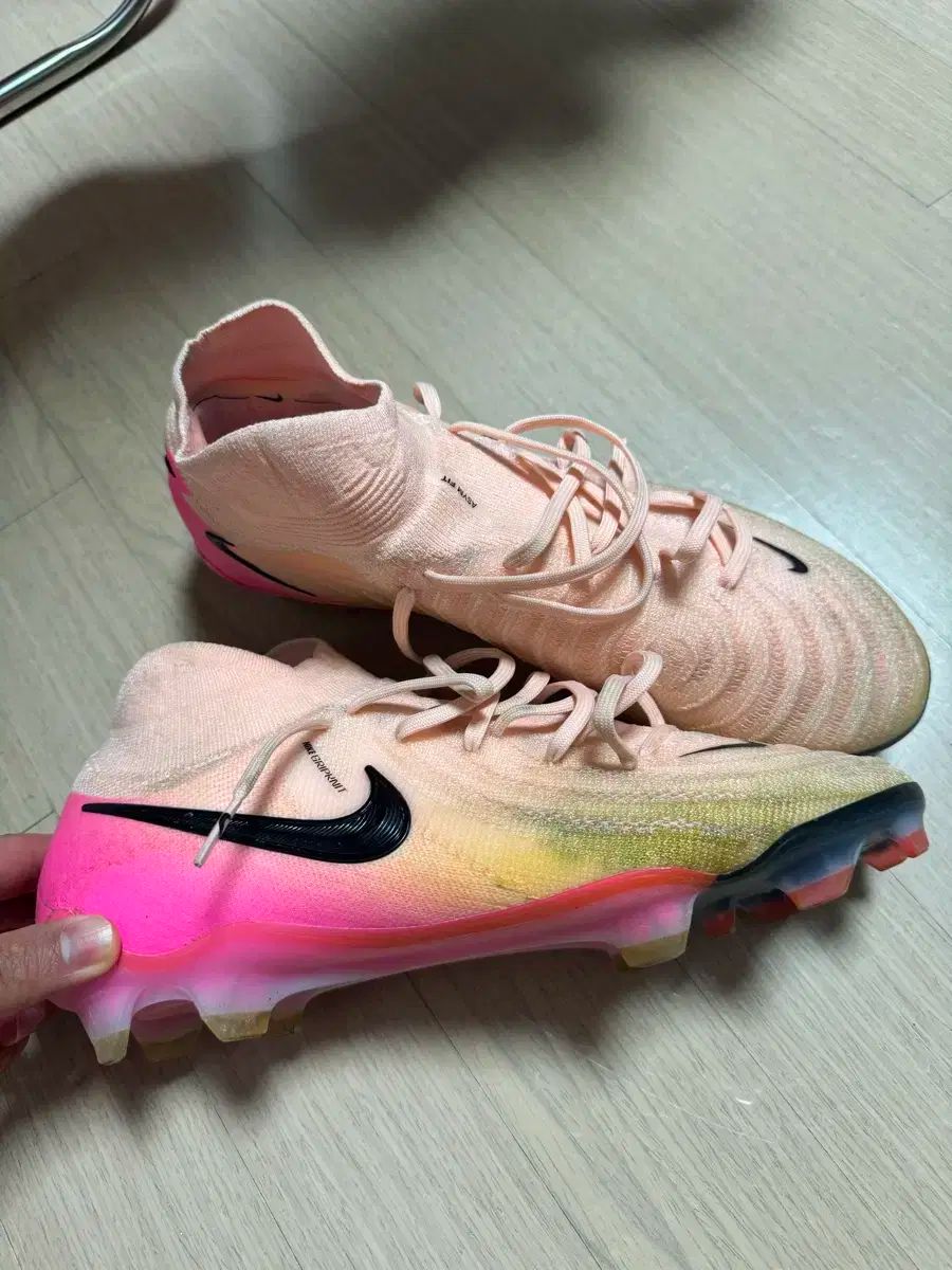 NIKE FANTOM サッカーシューズ 260サイズです。ピンク色の甲に黒色のNIKEロゴがPOINTです。土が少し付いていますが、全体的に状態良いです。別でコメントなければすぐ安全決済お願いします!