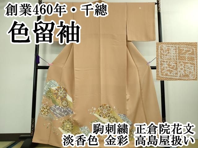 上 創業460年 千總 色留袖 駒刺繍 正倉院花文 淡香色 金彩 高島屋扱い kh 5