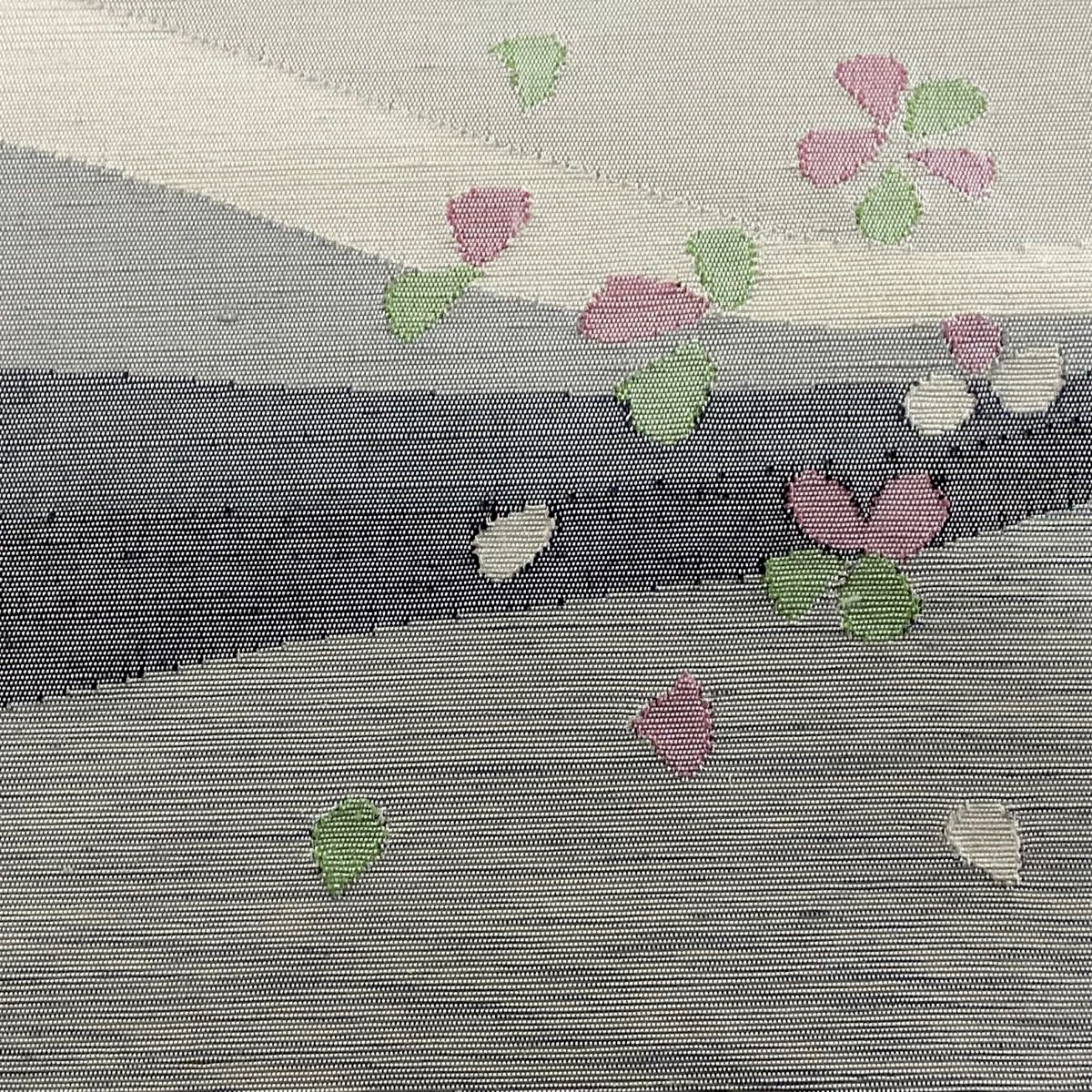 名古屋帯 落款 能州紬 八寸名古屋帯 松葉仕立て 花 花びら 灰色 正絹