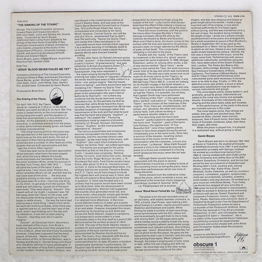 盤 GAVIN BRYARS THE SINKING OF T EG LP