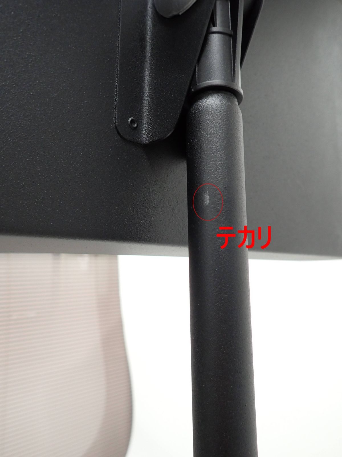 ポールにテカリ、キズ(銀色部分)、脚に削れ、スレ、テカリ、キズもあります。