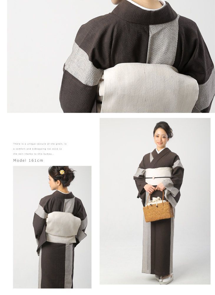 真夏は浴衣として、春や秋には半衿を合わせて単衣着物として着られます。