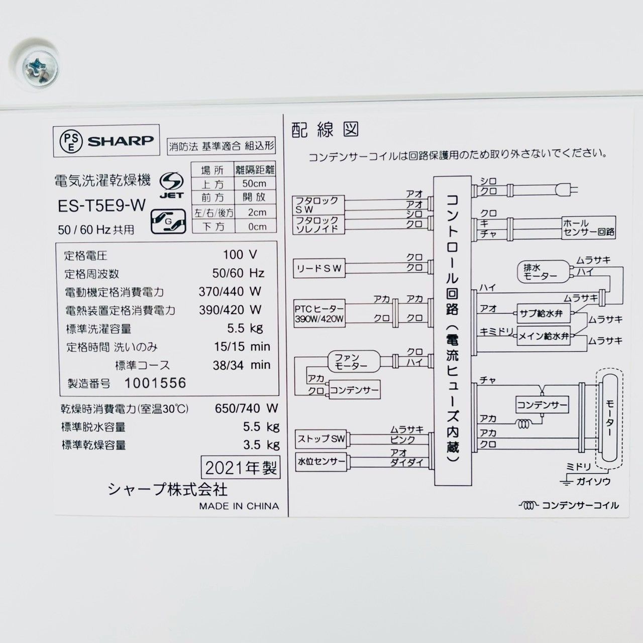 洗濯容量 5.5kg