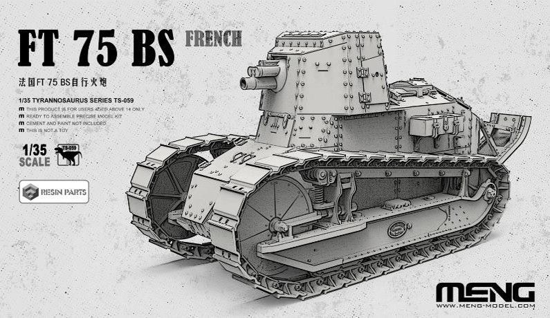 FT 75 BS は第一次世界大戦末期にフランスで開発された車輛です。FT-17の車体に75mm榴弾砲を搭載したもので、最大射程は2100mでした。生産数はごく僅かでしたが、自走砲のパイオニアともいえる存在です。