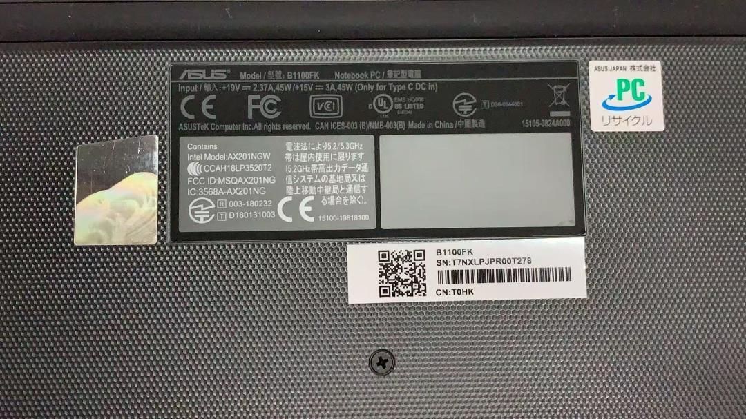 ASUSメーカー再生品ノートパソコンです。