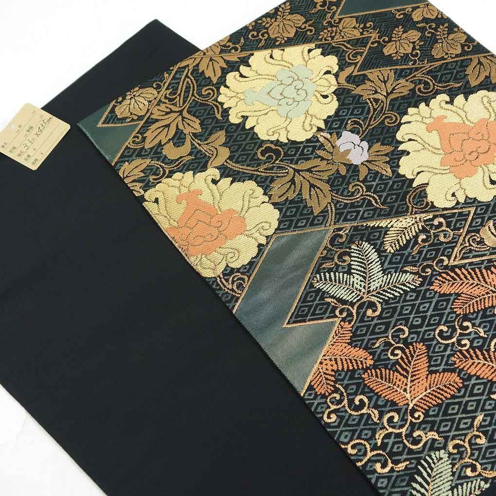 袋帯 幅31 cm 長さ435 レディース 花柄 秋冬春用 正絹 シルク グリーン リメイク リユース リサイクル 呉服のきくや