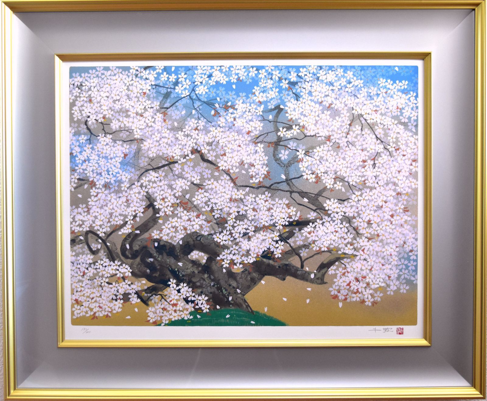 桜の画家として知られ、現代日本画の巨匠、東京藝術大学名誉教授であられる中島千波先生のシルクスクリーン「清風山桜」です。