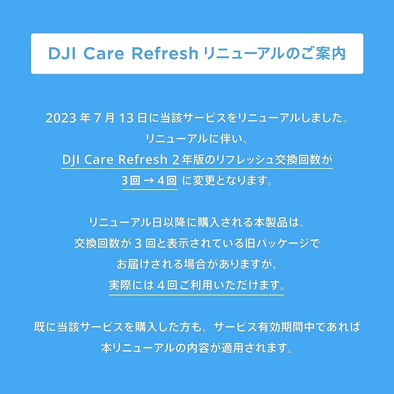 商品名:DJI Care Refresh 2年版 (RS3 Mini)