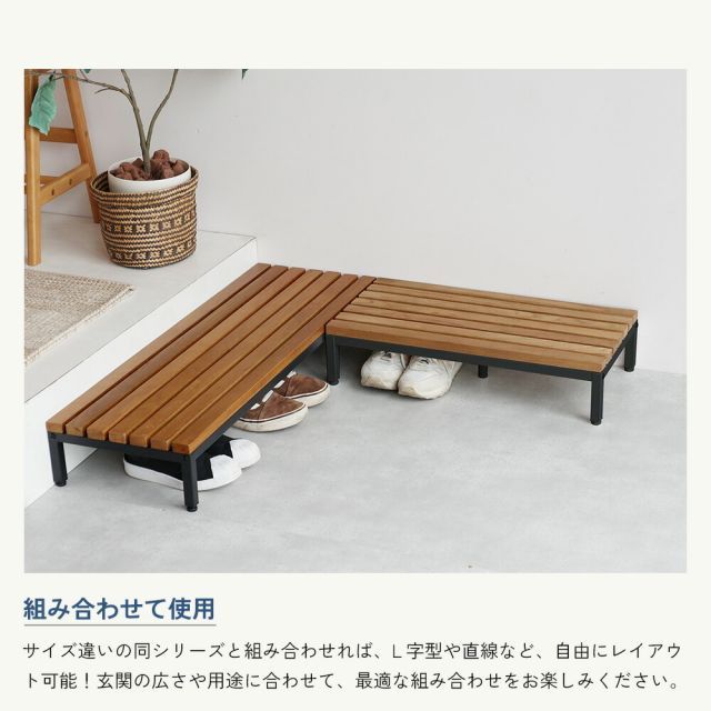 説明木製天板×スチール脚のシンプルな玄関台。玄関を美しく整え、日々の暮らしをより快適に、心地よさをもたらす踏み台。EntranceStage