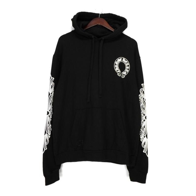 クロムハーツ CHROME HEARTS SWTSHRT PLVR 袖フローラル バック ホースシュー プリント プルオーバー フーディ パーカー 44396