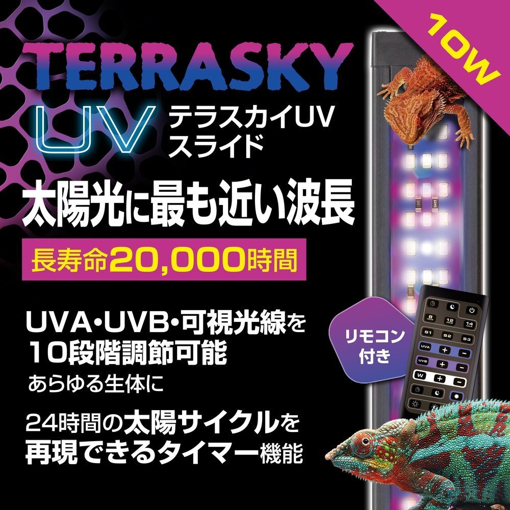 テラスカイUV スライド10 W GEX 爬虫類 ライト UVA UVB 可視光線 LED