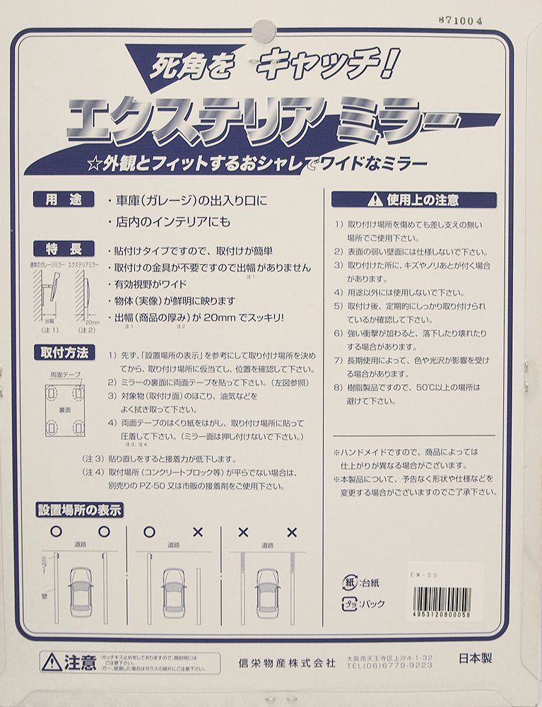 死角をキャッチ! 車庫(ガレージ)等の出入口に! 安全と安心のミラー(曲面ミラー)