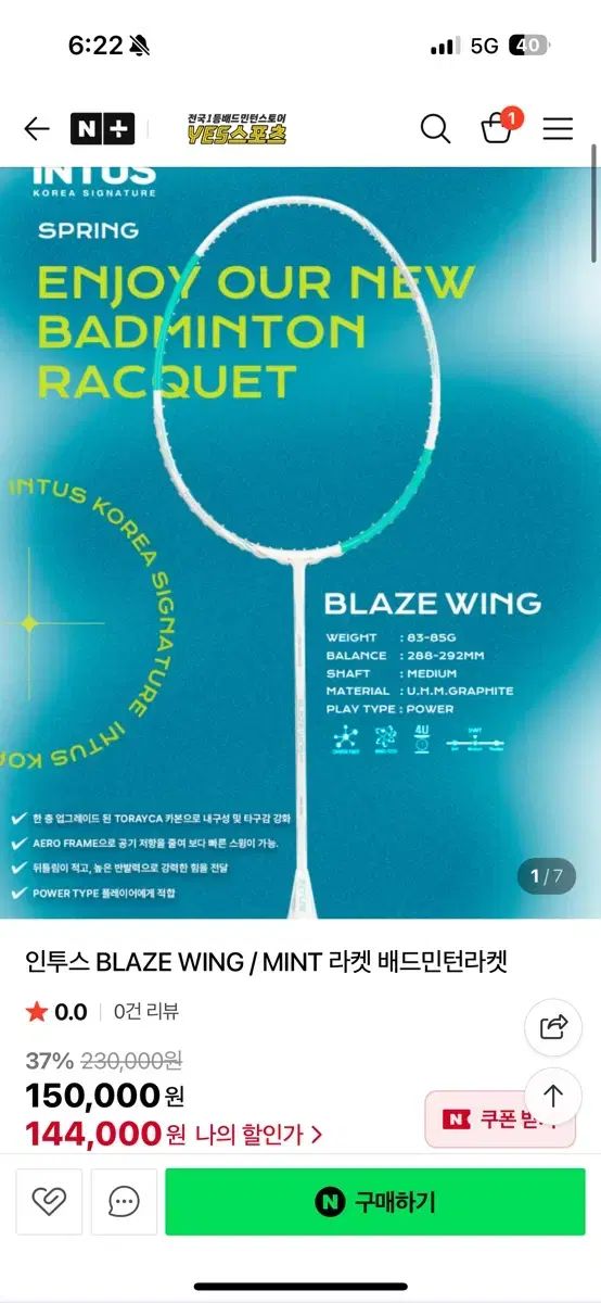 未開封のIntus Blazeウィングバドミントンラケットを販売しています。