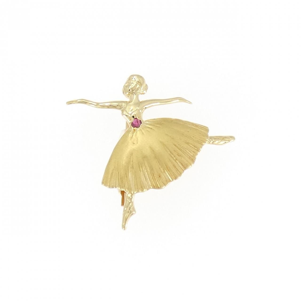 K18YG ルビー ブローチ 0.04CT