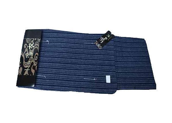 浴衣 帯 下駄 信玄袋 腰紐2本 6点フルセット 男性用 Lサイズ 綿85% 麻15% しじら織り 濃紺色 縞柄 夏祭り NO 41749-2