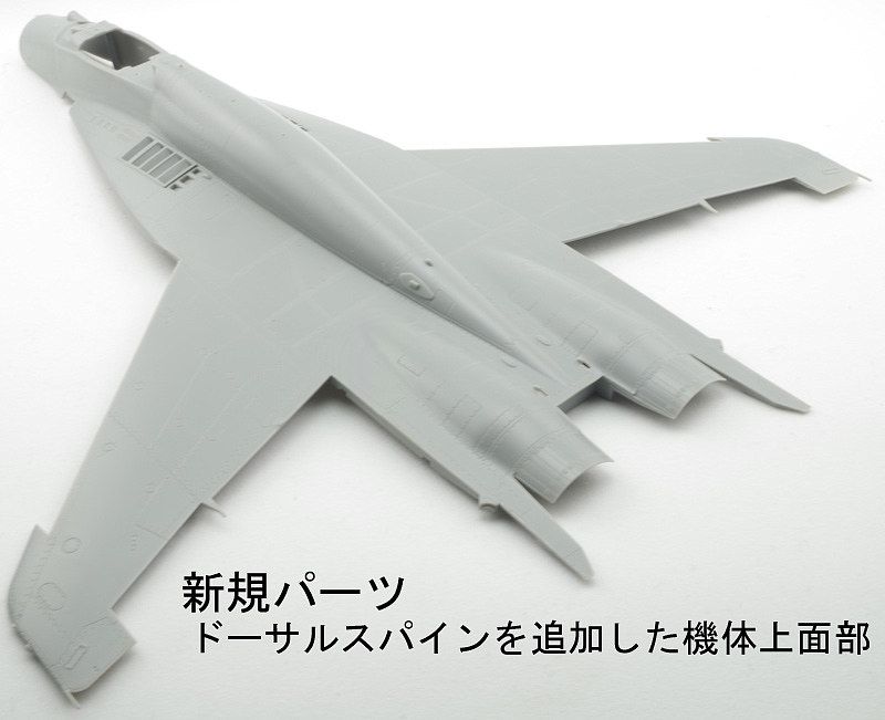 ・本キットでは大型化したドーサルスパインやグラスコックピット化された計器板やサイドコンソール、R77ミサイル、主車輪、給油プローブ等を新規パーツにて再現。