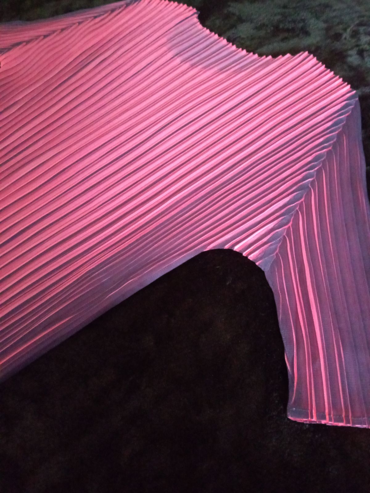 異なるプリーツの幅により、角度によって色見が変わります。