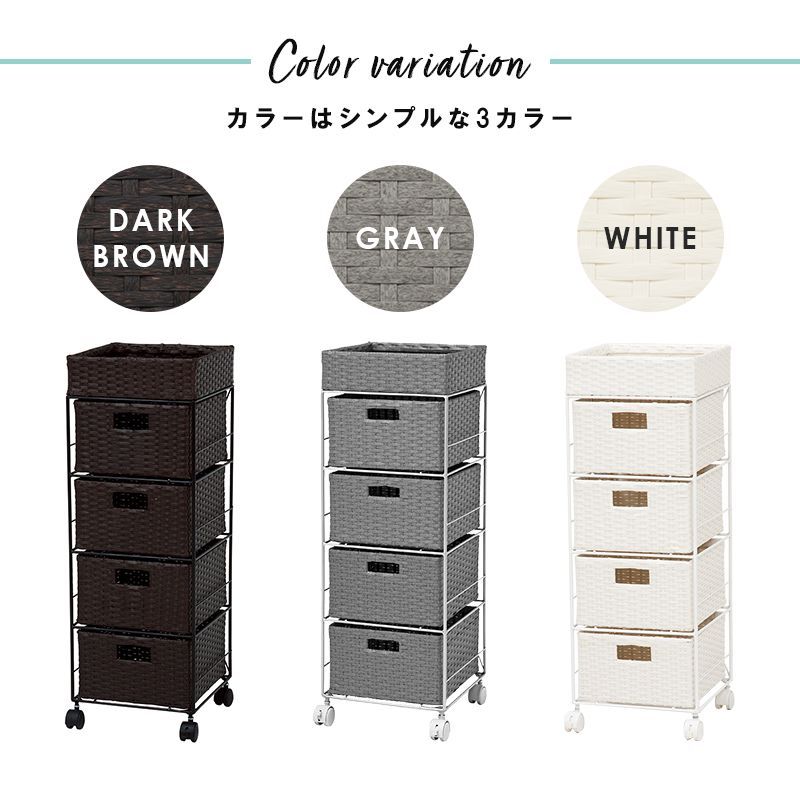 通気性 バスケットタイプ ランドリーチェスト スリム 省スペース 設置 脱衣所 収納 かご 棚 キャスター ランドリーラック SMOOTH スムース 4杯 幅30.5 cm カゴ 籠 すきま スマート RAN-2410 OA