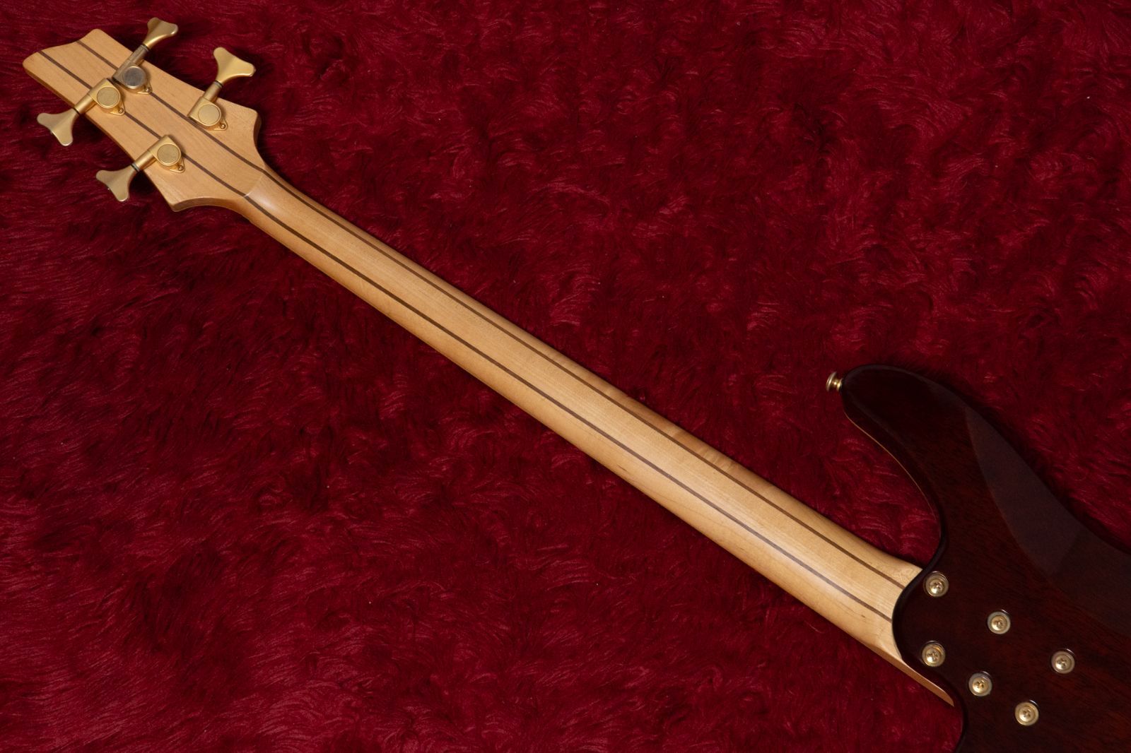 ネックはMapleとWalnutの5ピース構造で、高い剛性と安定したサスティンを実現しています。