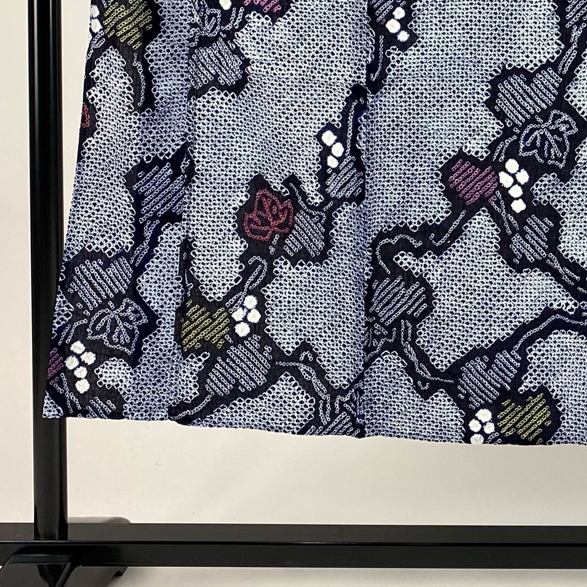 浴衣 身丈145 cm 裄丈62.5 S 絞り浴衣 葉と実 紺色 綿