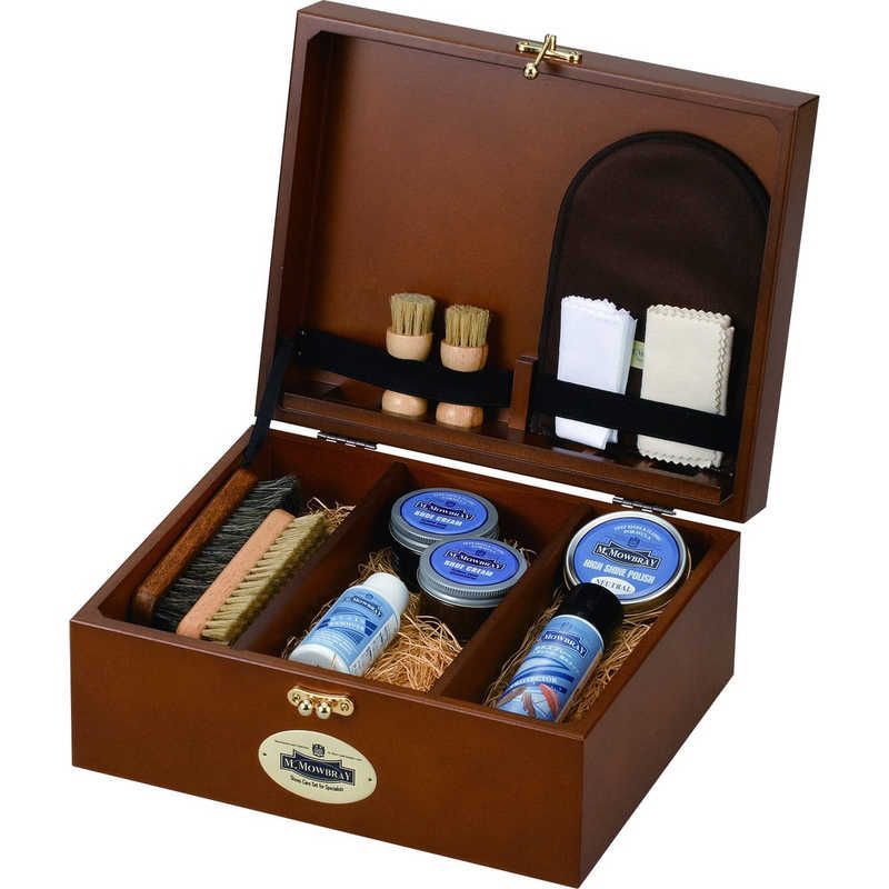 シューケア(スムースレザー靴のお手入れ)用の専用ボックスに入ったベーシックなセットです。