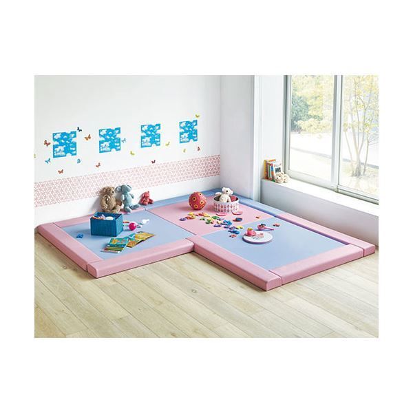 木芯材を使わないクッションだけのキッズサークル「CKシリーズPVCレザー張り」/外枠幅1050mm。PVCレザーは、耐久性に優れたお手入れしやすい張地です。中身はウレタン素材なので、適度な弾力があります。マットと組み合わせてご使用いただけます。外枠とマットは面ファスナーで連結固定できるので、設置・レイアウト変更も道具不要で簡単です。「キッズサークル木製収納(706‐640)は組み合わせて使用いただけますが奥行サイズが異なりますのでご注意ください。