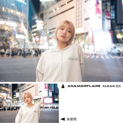 ■映画撮影に使用されるアナモルフィックレンズのように、光線状のフレア効果が手軽に得られるレンズフィルター