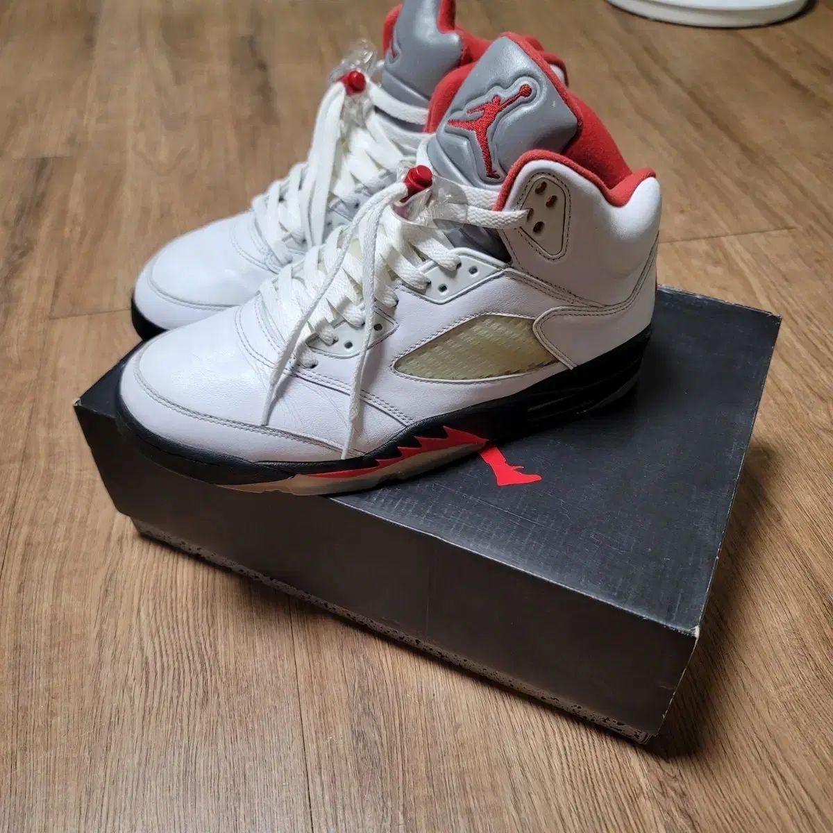 JORDAN (ジョーダン) 5ファイアレッドサイズ280を販売しています。これは箱にGiが入った新品アイテムです。赤のアクセントが付いたきれいな白い背景がかわいいです。他に質問がない場合は、すぐに安全な支払いを行ってください!