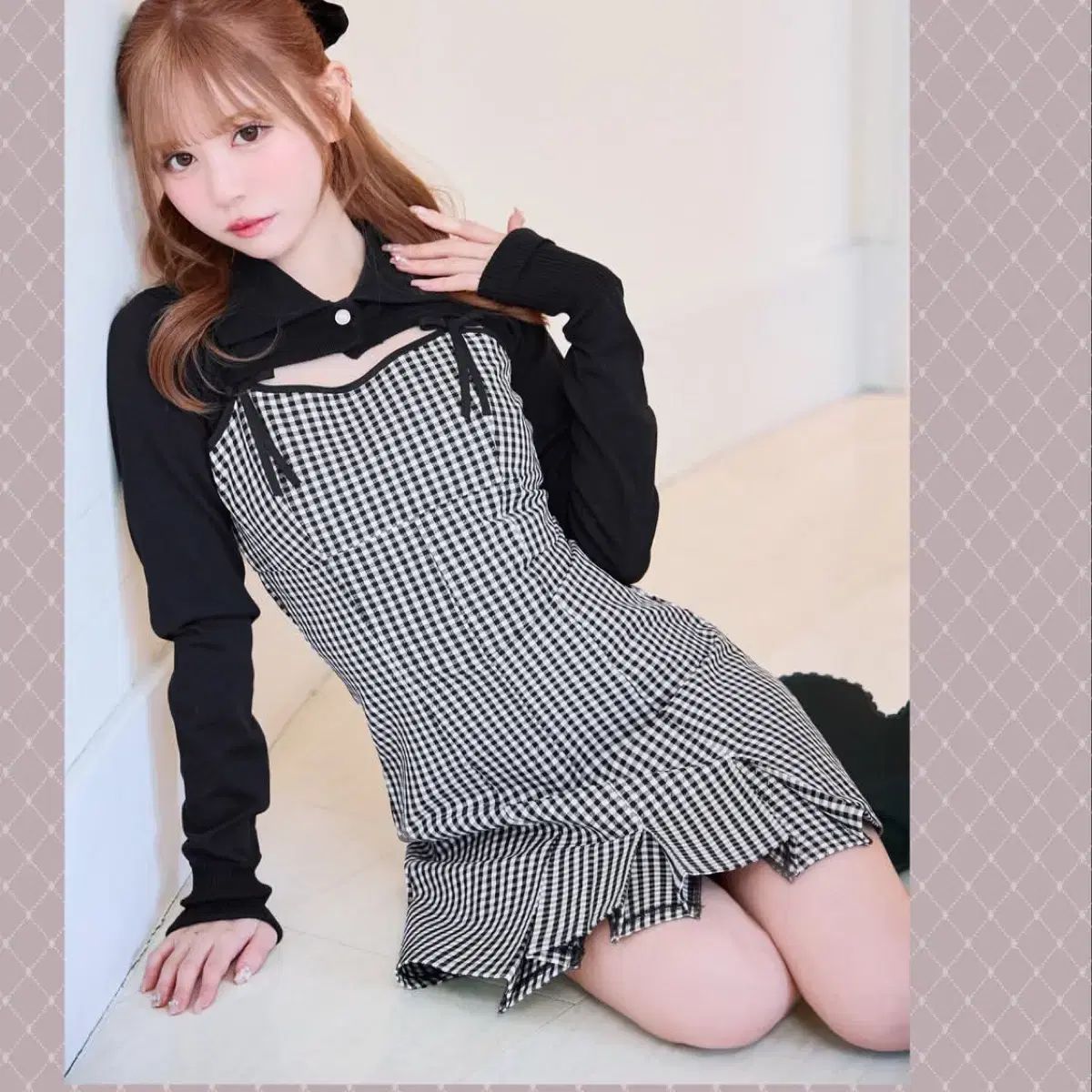 ギンガムチェックワンピース、ワンピース+カーディガン、合わせフルセットです。