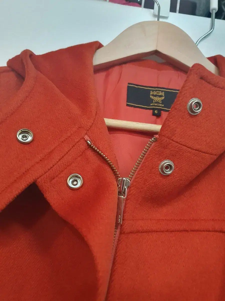 これはオレンジ色のMCM女性用ウールコートです