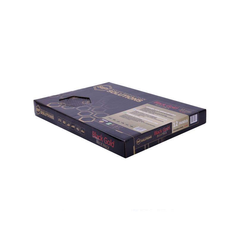 StP Black goldは、腐食防止剤が含まれた粘着性ポリマー層とエンボス加工したアルミニウム層という2層構造になっています。耐熱温度は-45℃〜+100℃の範囲になります。柔軟性があり弾力性もあるため複雑な表面に張ることが出来、制振性能に優れているのでドアやボンネット、フロア、ルーフなどの制振に最適です。施工にはヒートガン等は不要です。(極寒冷地を除く)