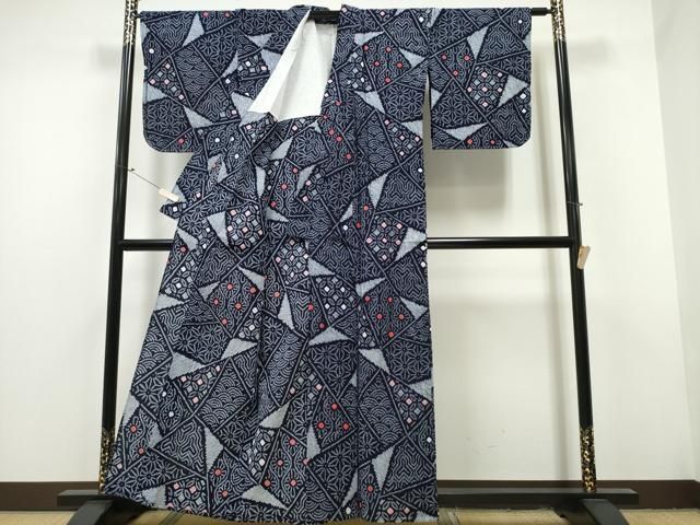 平和屋着物∴夏物 浴衣 有松鳴海絞り 切嵌吉祥花文 綿 ng