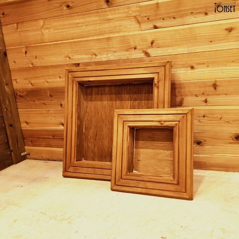 一般市販品では額縁部分が細くて、出来上がった時のフレーム感が薄くなってしまうのを改善し、思い切って太い額縁にしました。