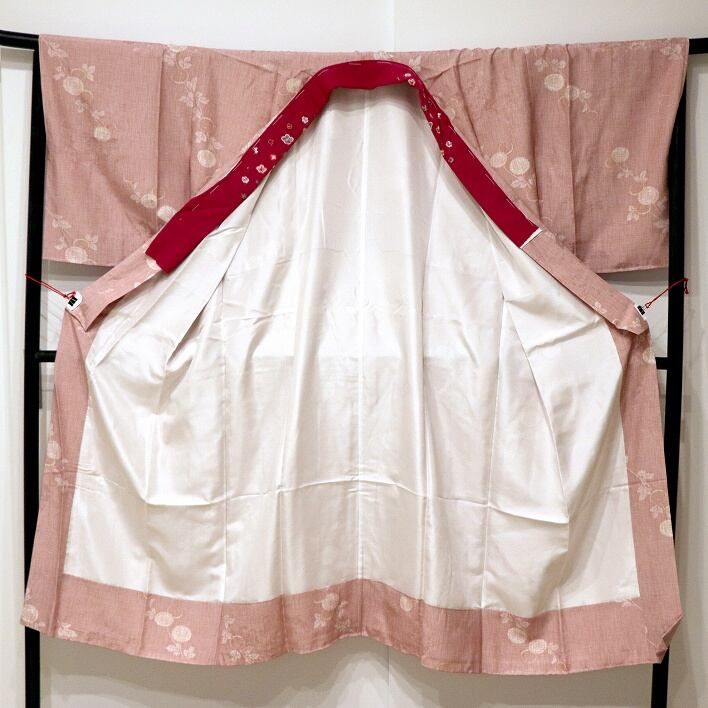 裄丈:約67cm、袖丈:約48cm、身丈:約131cm、未使用、うら付、だて襟付、絹製。状態ランク:B
