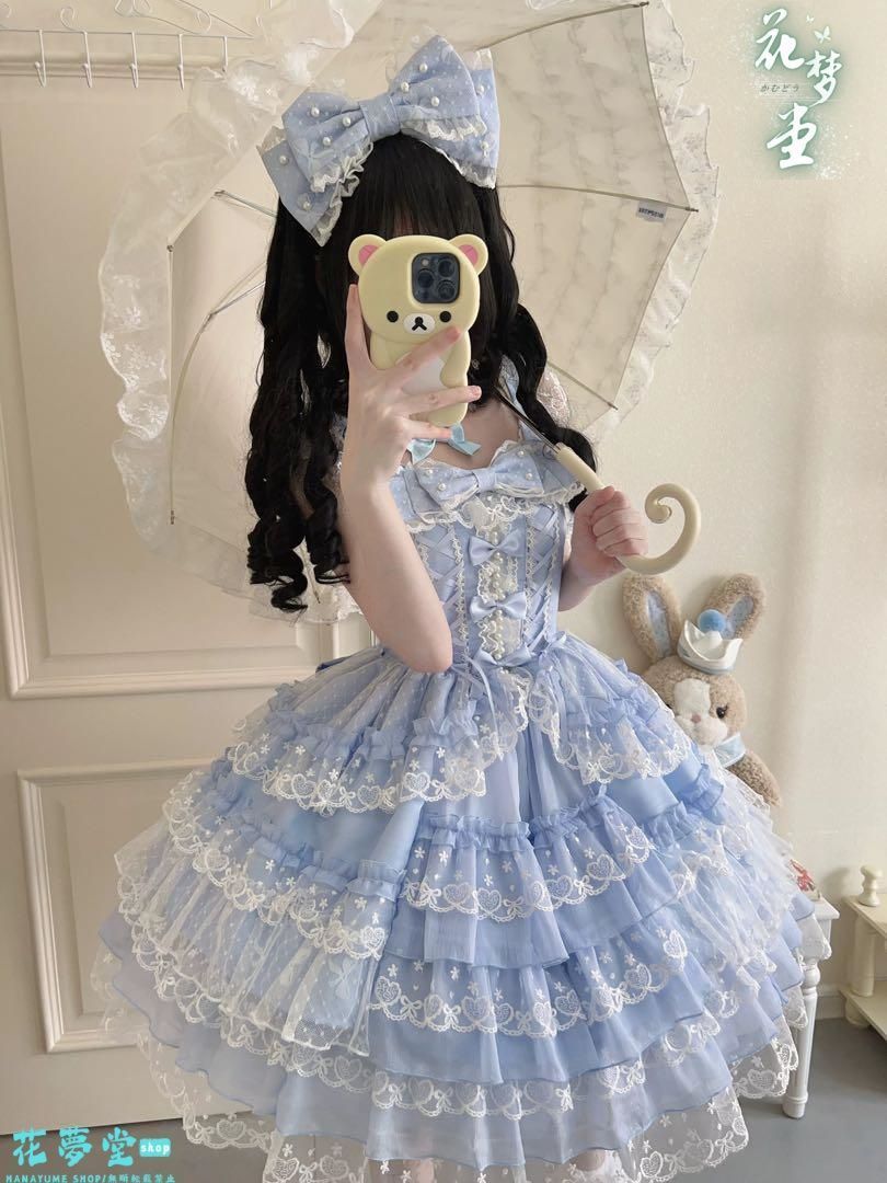 春から夏のお出かけにぴったりな、ひざ丈ロリータワンピース。レースフレアが魅力的で、動きを華やかに演出します。可愛さとおしゃれさを兼ね備えた一着で、季節の変化を楽しんで。春はブラウスと組み合わせて、夏はそのまま着用して頂けます。