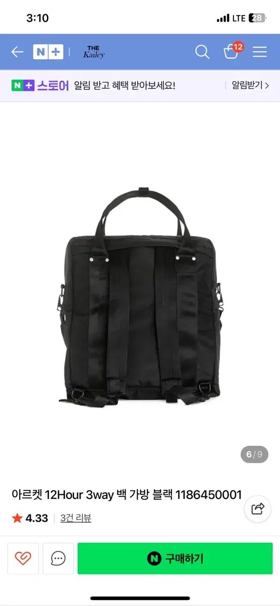 これはブラックのアークエット3ウェイバッグです