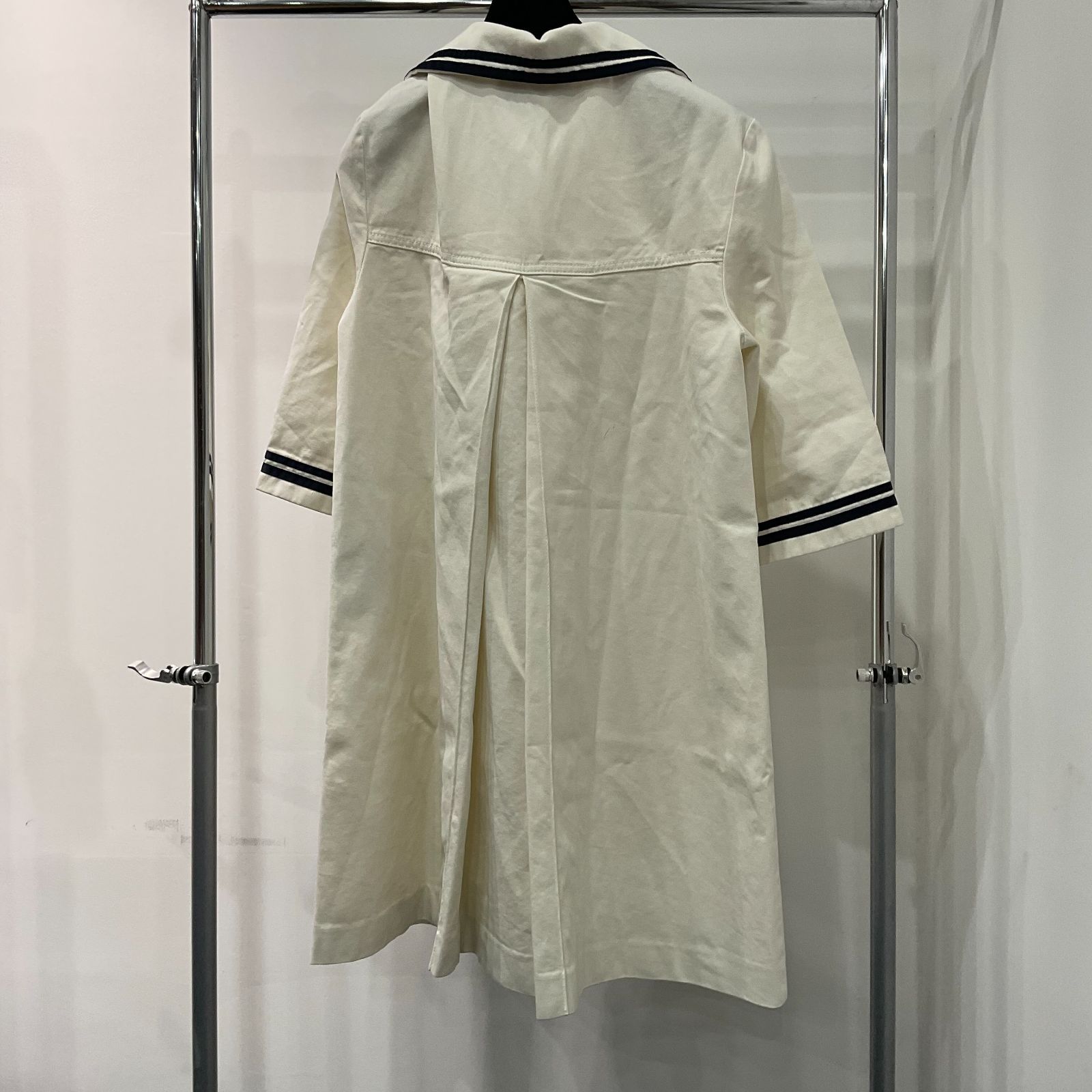 【商品名】:GUCCI GUCCI グッチ 691890 ワンピース ストライプトリム マリンテイスト GGボタン 白×ネイビー 38 ワンピース