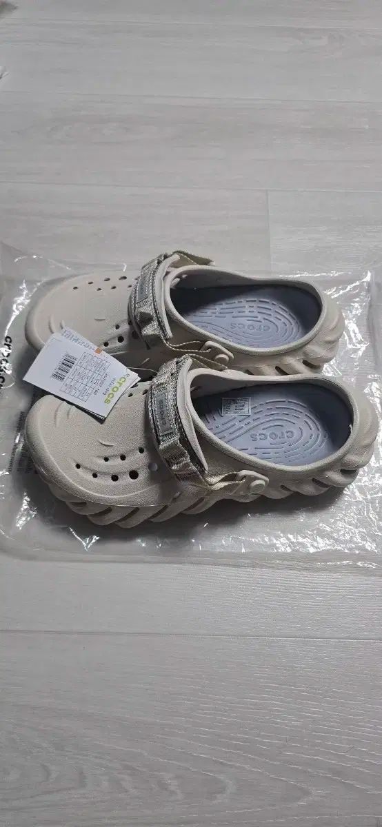 タグ付き完全新品 Crocs エスパドリーユ klogg サンダルです。265サイズで、独特なデザインが目につく商品です。