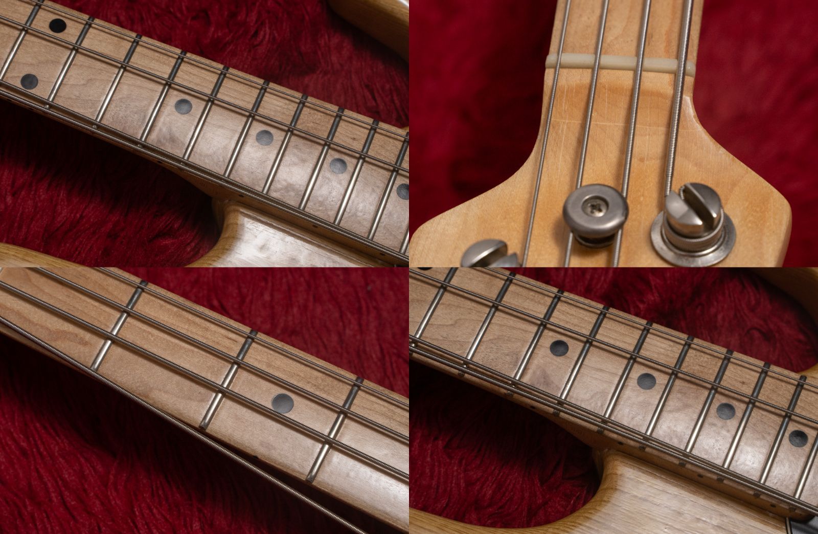 ナットが交換されています。ノブが2か所交換されています。ネックポケット、ジョイントビス穴付近に割れ補修跡があります。使用上の問題はありません。