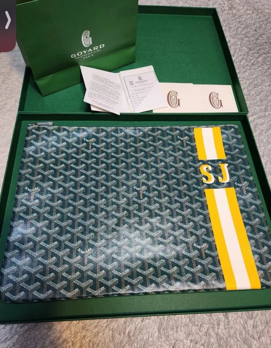 Goyard (ゴヤール) クラッチはGMサイズの付属品完備商品です。外側にSJのイニシャルが刻印されています。内部保証書とダストバッグも同梱しています。ご不明な点がなければ、すぐに安心してお支払いいただけます!