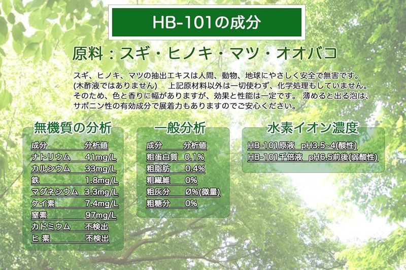 HB-101の原液を水で1,000倍~10万倍に薄めて使用