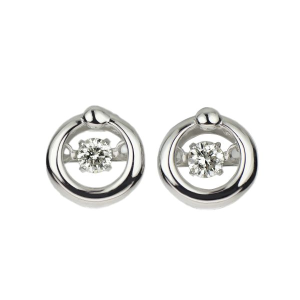 左右トータル0.10ctのダイヤモンドをセットした、エレガントなホワイトゴールドのスタッドピアスです。サークルモチーフの中心にセットされたダイヤモンドが、震えるように揺れるデザインが魅力的。いつものコーディネートにより華やぎを添える、シンプルで身に着けやすいダイヤモンドジュエリーをお楽しみください。