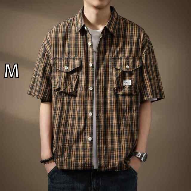 M メンズ ファッション 服 オシャレ シンプル 大人 かっこいい 大きいサイズ ストリート 紳士服 アメリカン レトロ ヘビー チェック柄 半袖 シャツ 夏 ワーク ジャケット