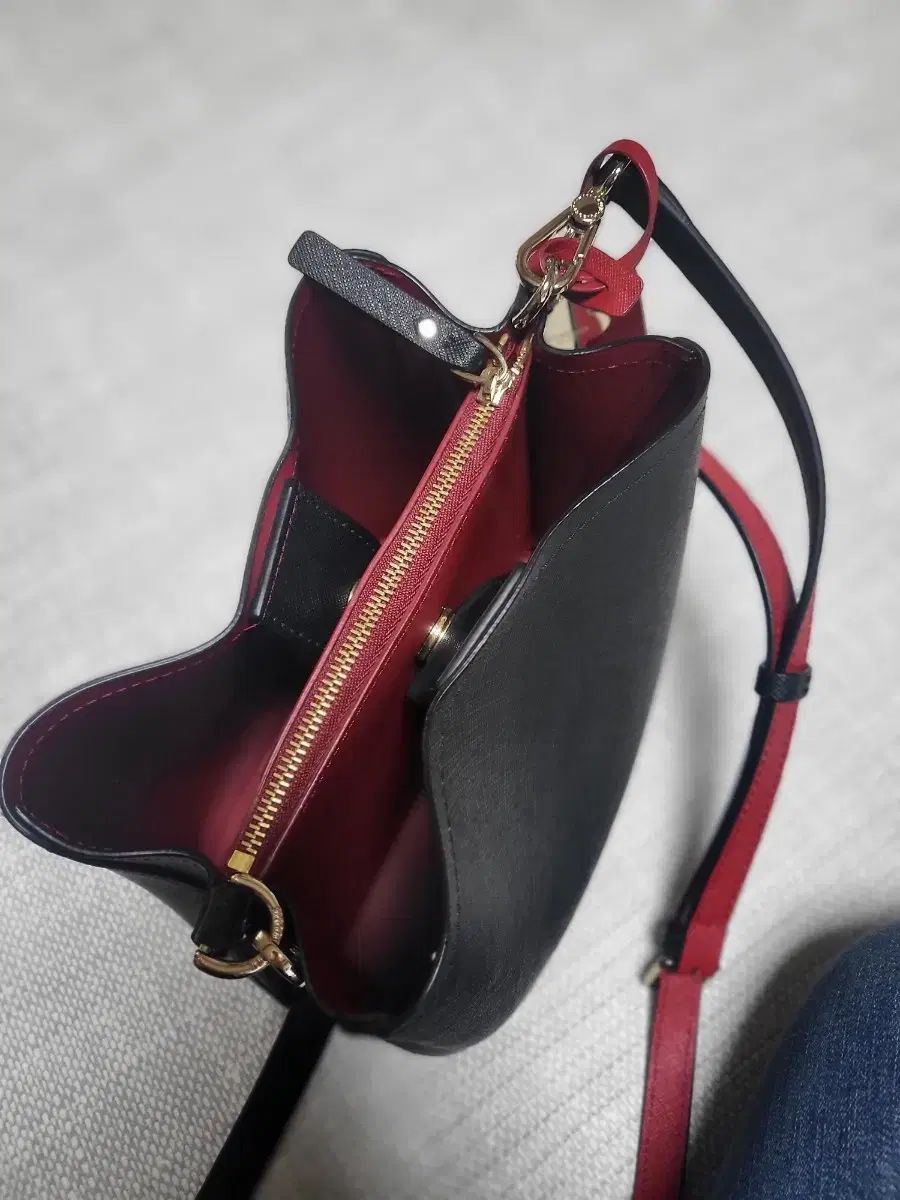 これはメトロシティのミニクロスボディバッグです。ブラックカラーに赤のインテリアがアクセントになっています。品質証明書とダストバッグが付属しています。ご不明な点がなければ、すぐに安心してお支払いいただけます!