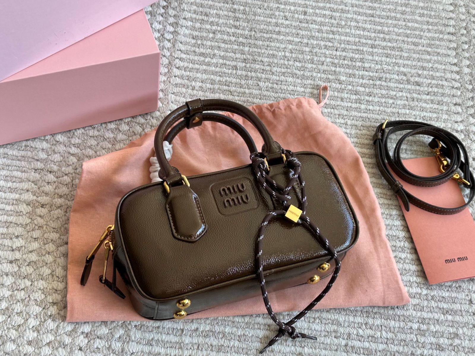 MIU MIUの新作ボウリングシルエットバッグ。コンパクトながら実用的なデザインが特徴です。