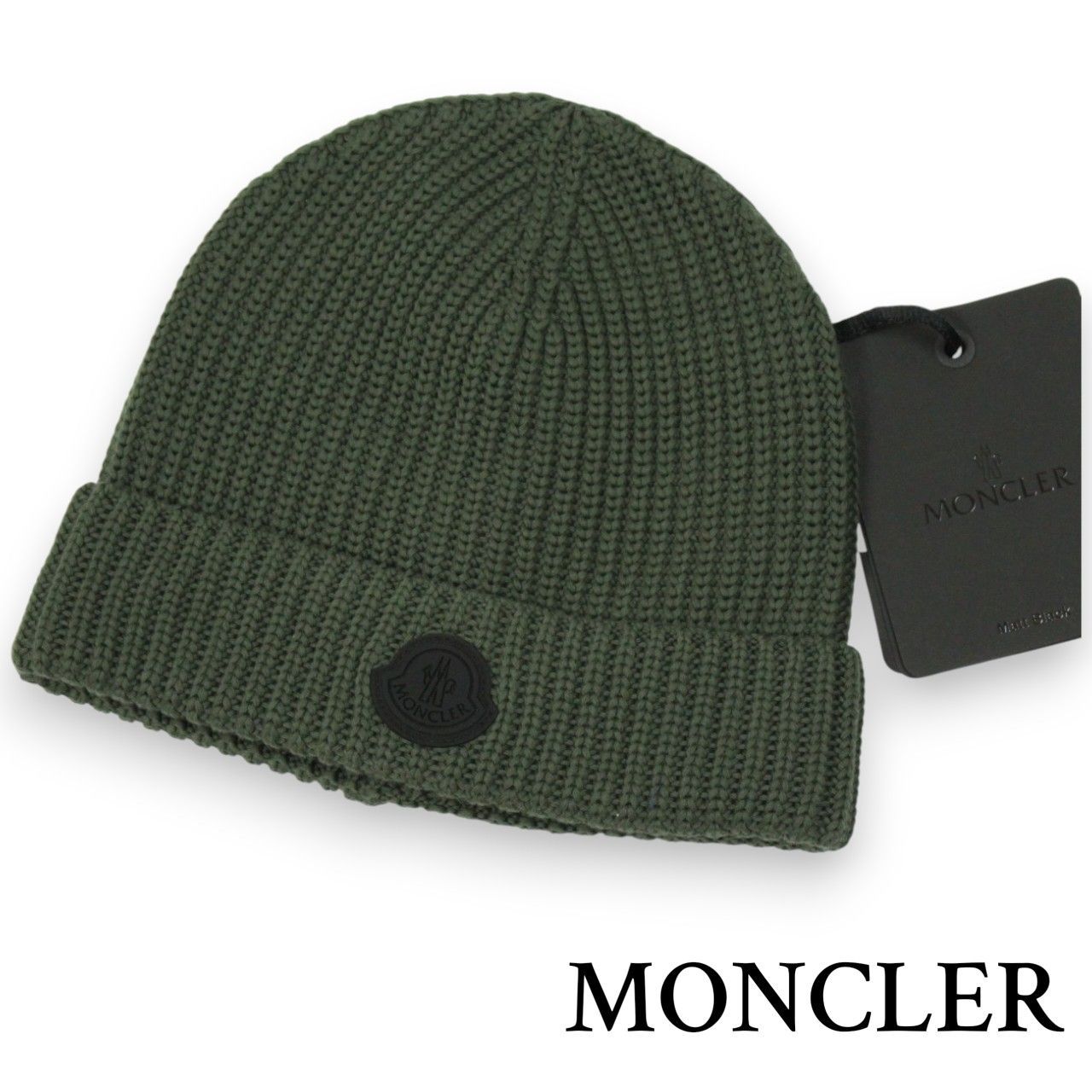 MONCLER MATT BLACK ニットキャップ ロゴ カーキ