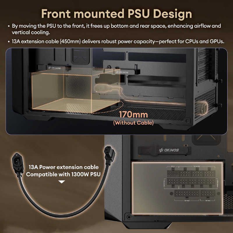 ※本製品のPSU延長ケーブルは13A(1300W)対応のため、消費電力が1300Wを上回るシステムでは使用できません
