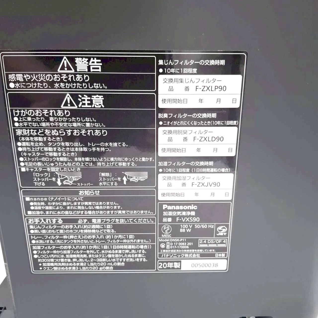 Panasonic 加湿空気清浄機 F-VXS 90
