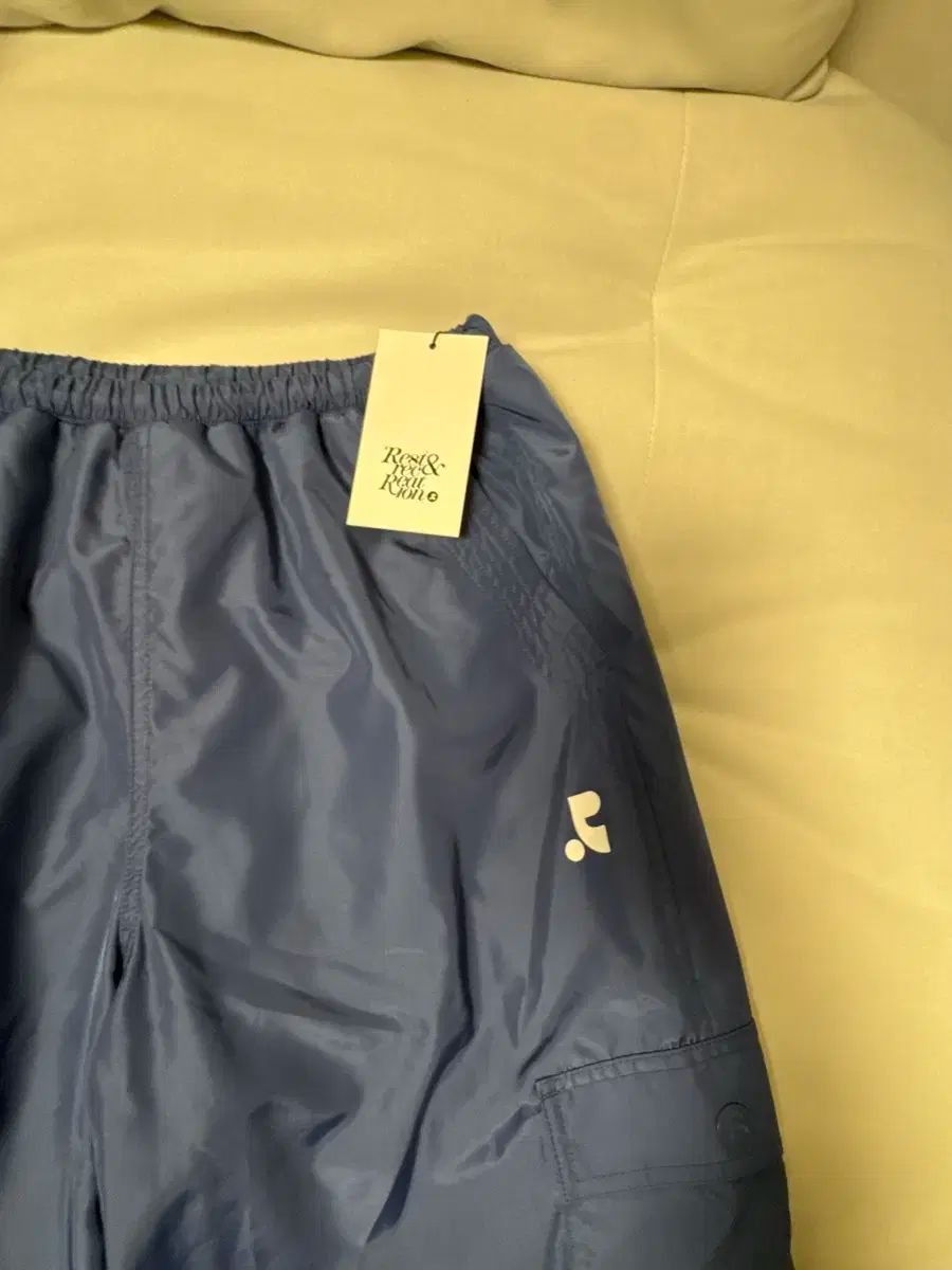 Rest&Recreation ジャージ ズボンです。タグも外していない新品商品で、ズボンの横に可愛いポケットが付いています。楽に履けるジャージ ズボンなので、手がよく伸びそうです。写真より鮮やかな青色です。